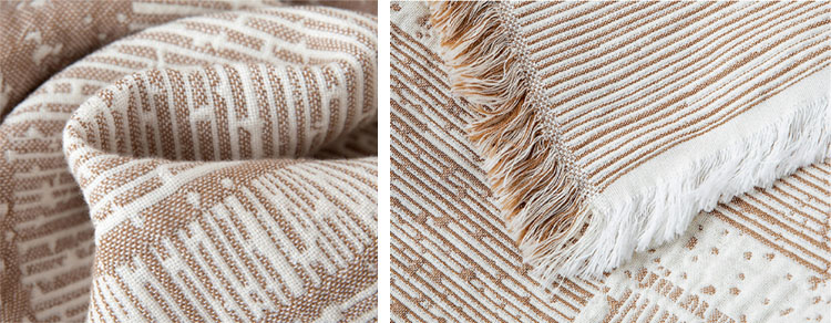 Certified by OEKO-TEX for safe, skin-friendly comfort, it features a modern fringed grid pattern that blends minimalist style with everyday functionality. The lightweight 4-layer weave keeps you cool yet cozy during office naps, sofa lounging, or lazy weekends—no overheating, just pure, breathable softness. Perfect for adding a touch of understated luxury to your home or workspace.
