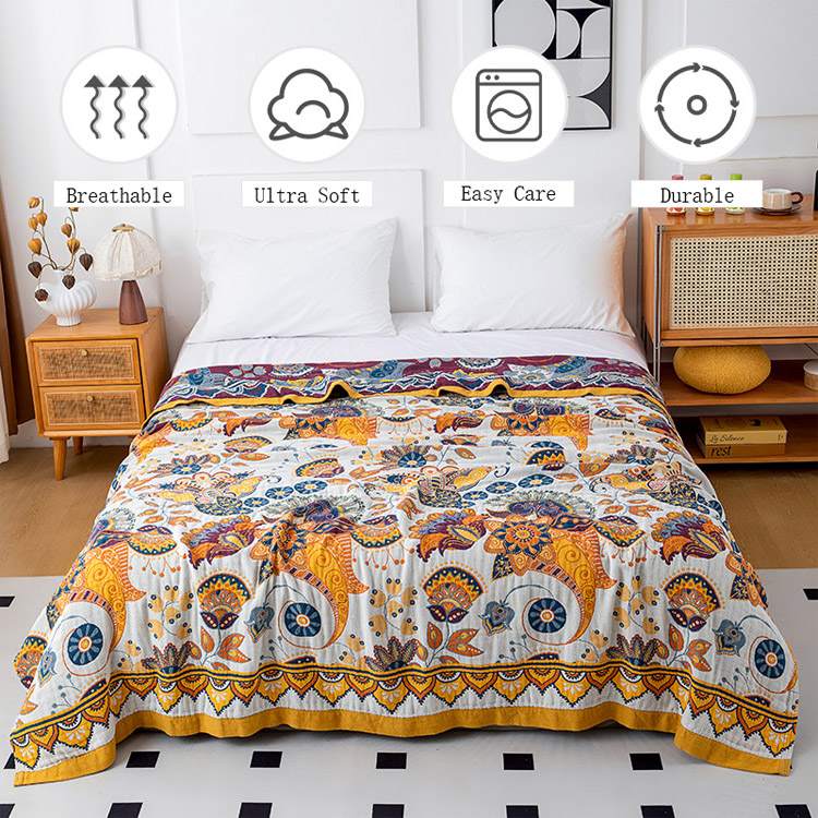 Baoding Bestsweet Textile Manufacturing Co., Ltd. is a leading large-scale textile production and sales enterprise in China. With 12 years of dedicated expertise in the industry, we specialize in the R&D, manufacturing and distribution of towels, bath towels, blankets, coral fleece products and cotton soft towels. Boasting remarkable cost-effective advantages alongside consistent product quality, our offerings have gained wide recognition across most markets in Europe, America and Central Asia. We adhere to the business philosophy of "Quality First, Commitment as Our Bond, Mutual Benefit & Win-Win Cooperation". We look forward to establishing a stable and long-term partnership with you, and becoming your reliable textile sourcing partner in China.Product IntroductionEscape into bohemian-inspired comfort with our 100% Cotton 4-Layer Gauze Throw Blanket.